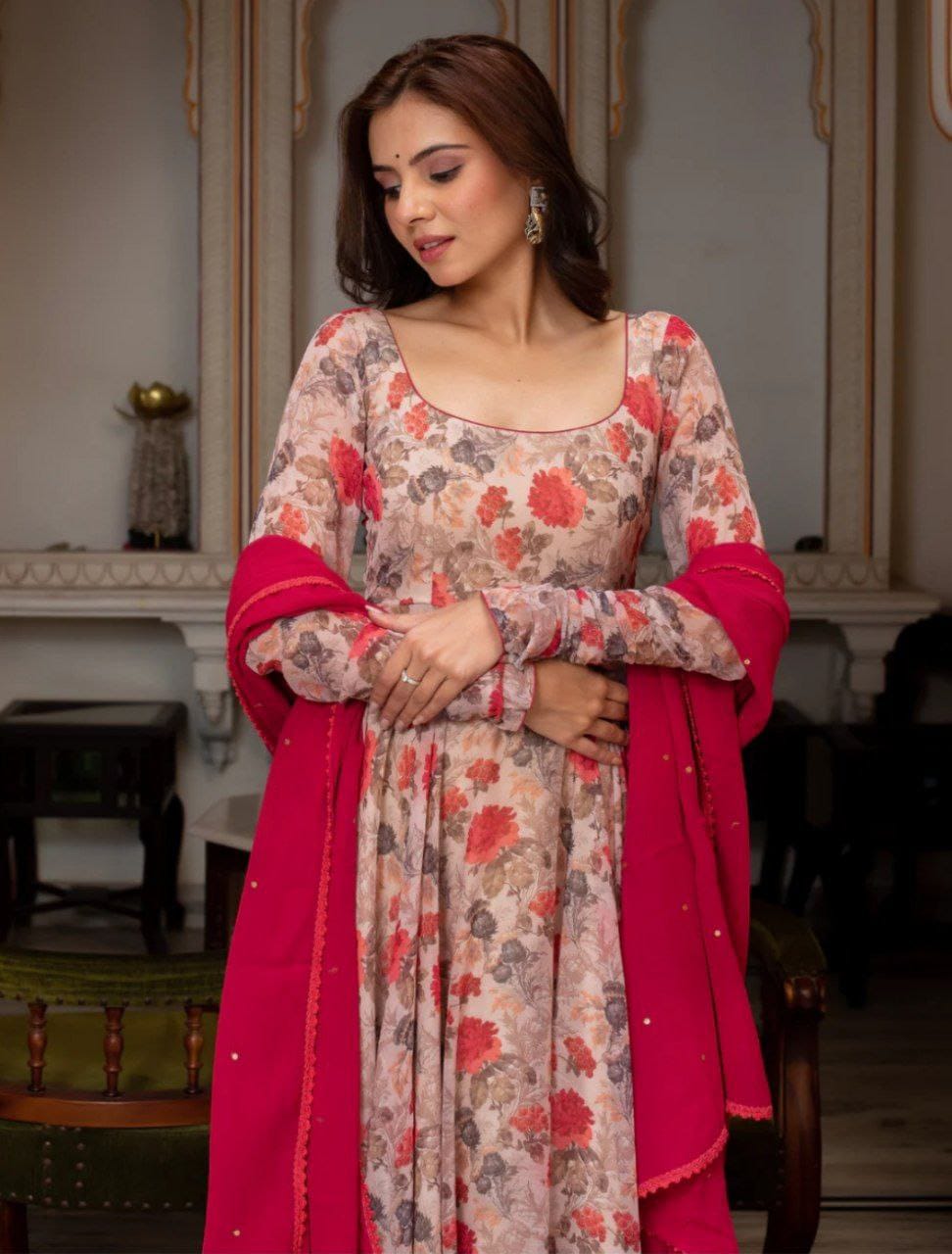 • Gorgeous floral prints on flowy Georgette – you don’t just wear it, you bloom in it