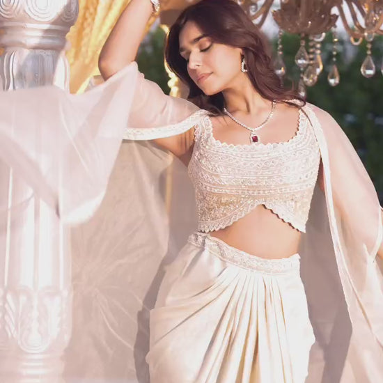 Introducing the latest statement piece from Shivali, now in the most serene and powerful color of all—White. This isn't just an outfit, it's an emotion wrapped in elegance, curated for the woman who walks with calm confidence and leaves a lasting impression with her silence.